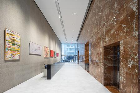 STRATEGIC DESIGN® News, Events. Strategic Design Corp. Happy first day of summer! If you are in New York City this summer, please visit the Tower 49 gallery https://www.tower49gallery.com within our office building (between 5th Ave. & Madison Ave.) and see Chromatic Dialogues, a yearlong exhibition of 24 Abstract Expressionist and Color Field paintings, in the ground-floor lobbies and the 24th-floor Sky Lobby. The 45-story building was designed by the renowned architectural company Skidmore, Owings & Merrill (SOM). They devised a simple crystalline form of two chamfered-cornered masses joined by the central service core and wrapped in blue-tinted mirror glass. Image via Tower 49 Gallery.