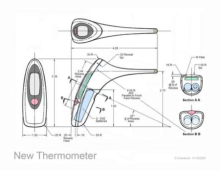 STRATEGIC DESIGN® News, Events. Strategic Design Corp. We are very pleased to celebrate that a new patent number D974928 has been granted on January 10, 2023, and assigned to our client friends. Multitech Medical Devices USA LLC: Quick Thermometers, Strategy, Research, Industrial Design, Ergonomics, Human Factors, Design Engineering, Rapid Prototyping. The inventors on the patent are Charles F.T. Merritt (Southport, CT), Douglas H. Grambush (Corona Del Mar, CA), and Scott W. Larsen (Newtown, CT). Key team member Robert J. T. Merritt (Providence, RI) played a significant role while conducting professional thermometer market research and writing a superior 30-page report with photos/images to guide the teams. We have had the opportunity to provide new product development innovation consulting services to many brands within the healthcare and medical devices categories for over 28 years including CVS Health + CVS Pharmacy, HCA Healthcare, Medtronic, Microlife, Mobile Heartbeat, Johnson & Johnson, Nova Biomedical, Pfizer, Rite Aid, Roche, Rubbermaid Healthcare, Carex, Sunbeam Health at Home, Target, Walgreens, Walmart, Yale New Haven Health. Image via Charlie “Chas” Merritt.